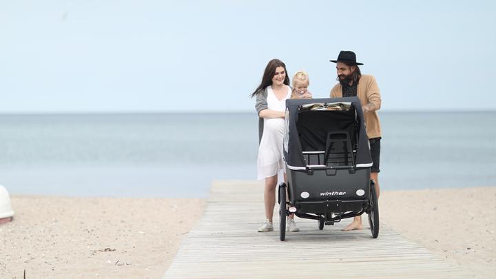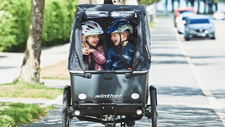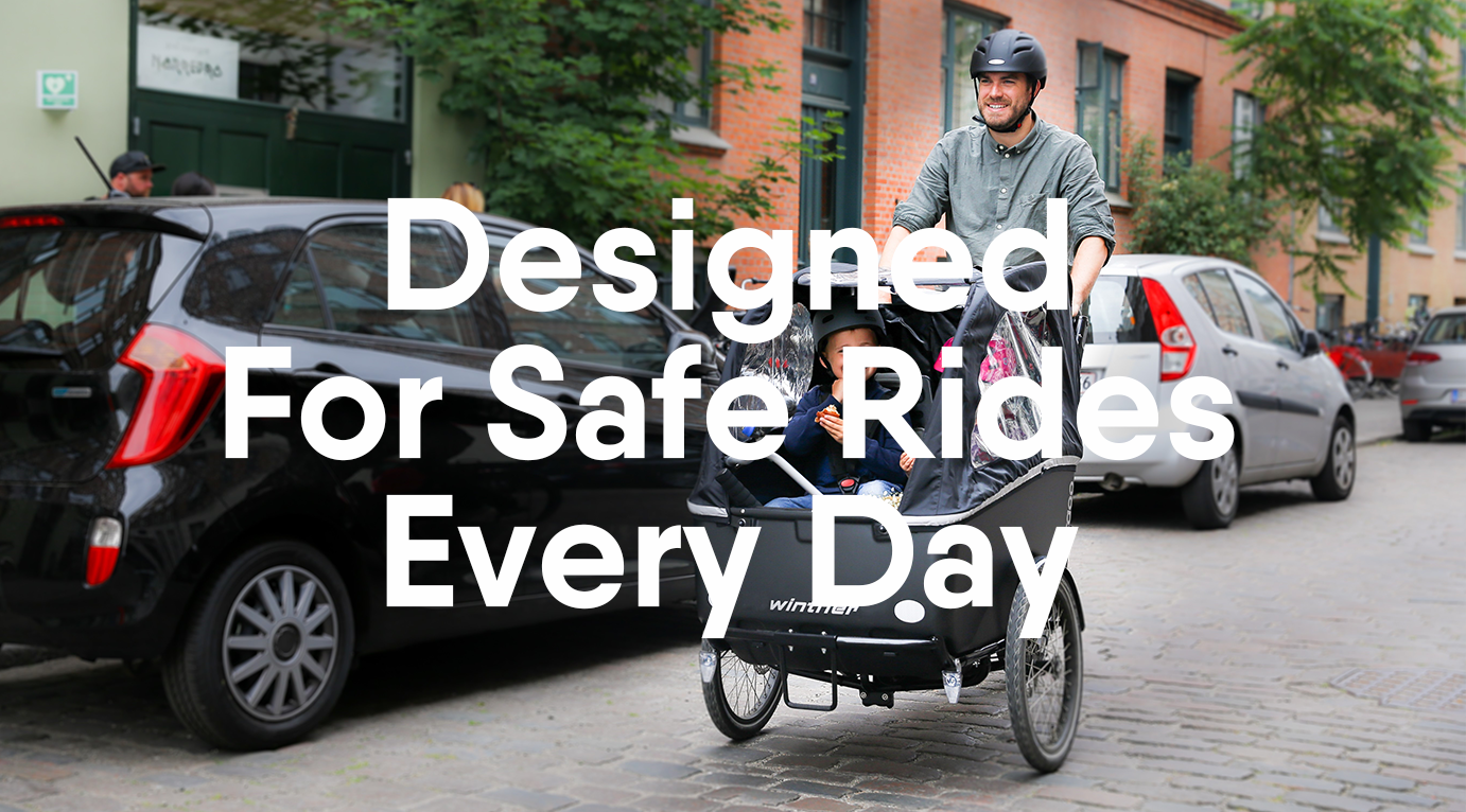 Our cabin bases are formed in strong impact-resistant PE or PSPE material without any sharp edges. This enhances child comfort and safety during the ride. The front frame of Winther cargo bikes is engineered to effectively distribute and transfer impact forces.