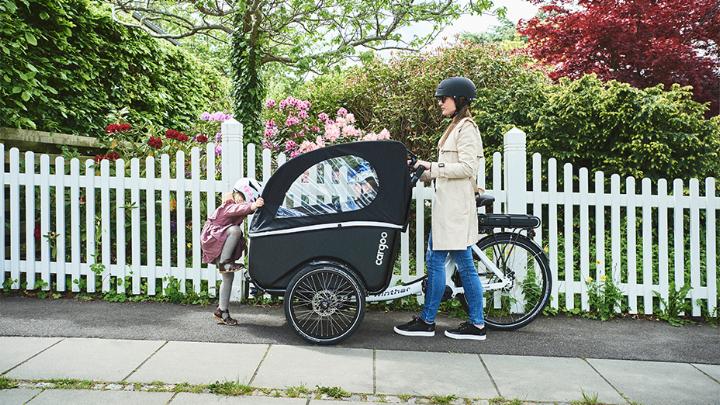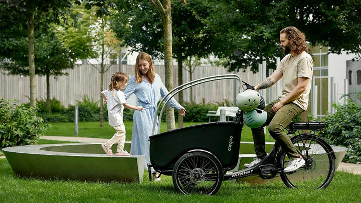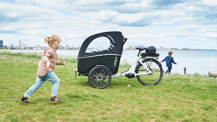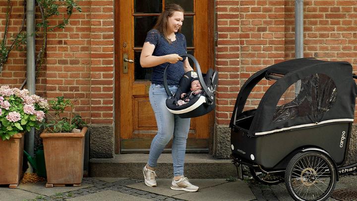 Cargoo is our roomiest cargo bike. It features a 278 L cabin, which matches the trunk of a small to medium-sized car and can carry up to 100 kg. It holds up to four children in the steel tube reinforced cabin. Choose among a variety of seating options. If you have small children, the ISO fix Console makes life easier when switching between different transport modes. Just move the ISO-FIX auto seat from your car to your Cargoo - and back. Or will you bring your partner along? Then choose our Family Bench which allows children and grown-ups to share the bench. Options are many so that you can design it based on your needs.
